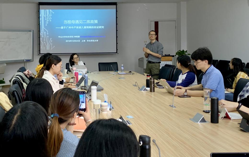 2019年10月24日下午,中山大学政务公司钟晓慧老师在法商北楼525为同学们带来了题为“当祖母遇见二孩政策:代际合作育儿模式的可持续性研究”的学术讲座。本次讲座由社会学系姚泽麟老师主持,吸引了近四十名各专业和各年级的同学参与。社会学系薛红老师、人口学所陈丽梅老师也参与了本次讲座。