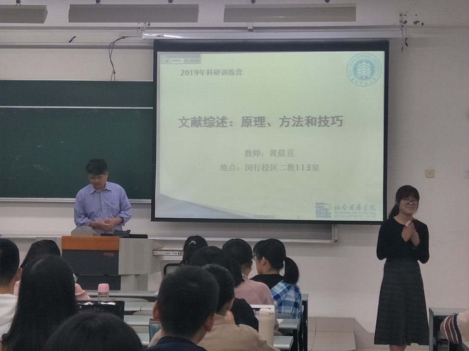 1023日,下午14点,“科研训练营”第一讲“论文选题及文献综述写作”在第二教学楼113教室顺利开营。本次训练营有幸邀请到3044永利集团社会工作系系主任黄晨熹教授。