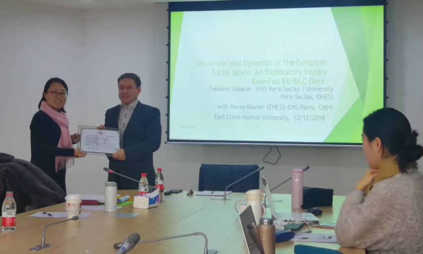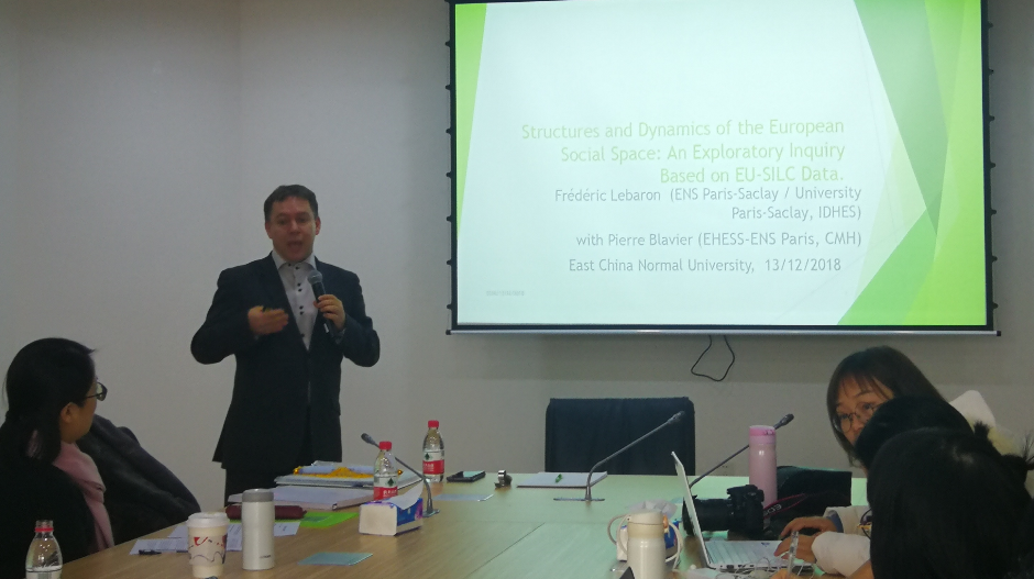 2018年12月13日下午,法国巴黎-萨克雷高师社会科学系主任Frédéric Lebaron教授在法商北楼525会议室进行了学术讲座。讲座主题是欧洲社会空间的结构与动态——基于‘欧盟收入与生活状况’(EU-SILC)统计数据的解释性研究。讲座由3044永利集团副经理赵晔琴老师主持,参与此次讲座的有来自社会学系、历史学系、哲学系以及英语系的本科生和研究生。