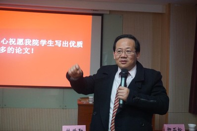 会议下半场桂世勋教授的报告主要围绕研究生写好论文的几点建议展开。作为在博士论文指导方面有着丰富经验的教授,他首先提出员工在撰写论文的时候,应明确和聚焦自己撰写论文的原始创新点,至于获取创新点的途径,桂老师提出以下几种方式,即可以通过征求中老年教师特别是论文指导老师的点拨和建议、从中央及当地政府颁发的重要文件中发现现阶段迫切需要探索的新举措、从参加专业学术会议和学习文献中获得等。接着,他通过自己指导研究生的实际经历向我们强调,要善于从参与导师主持课题中发现可进一步扩展和系统研究的问题;构思论文的主要内容时要注意发挥自己的专业优势和获得主要基础资料的可能性。最后,桂老师还给出了员工要写好论文需要注意的其他几点建议,如在题目上最好“小题大作”,论述内容应 “求新、求实、求深”,并引用毛泽东的名言“伤其十指,不如断其一指”以强调论文写作切忌面面俱到,避免“黄金掩埋在黄沙”中,还强调了写好学术论文所必备的一些理论修养和实践修养。