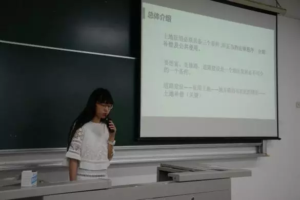 她耐心地为听众阐释土地征用的概念,帮助同学们更好地理解土地征用对于乡村的意义。在基本情况介绍部分,她们团队在湖南、河南两地的探访经历使在场同学了解到了土地征用在乡村喜人的发展趋势。
