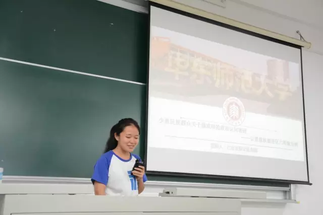 在大家期待的目光中,14级汪雪滢带来了主题为“社会支持网络视角下的流动儿童家庭教育研究” 的实践课题。