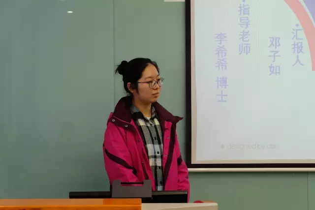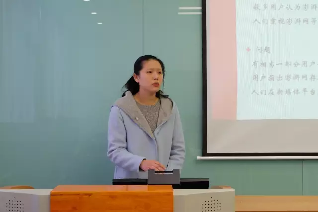 首先进行答辩的是哲学系研究生一年级的陈瑜恬同学。她为我们带来的主题是《新媒体与学术思想传播关系的调查研究》,以澎湃新闻对儒家文化的报道为切入点,展开论述。陈瑜恬同学的展示简洁、精辟,足见其深厚的学术素养。