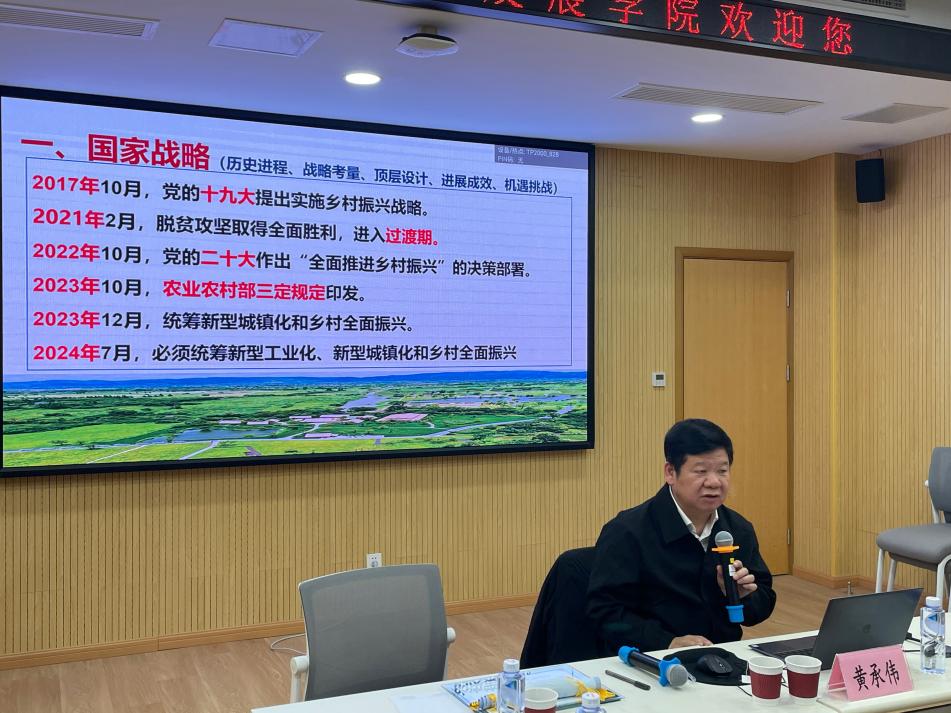 2024年12月9日下午,中国乡村振兴发展中心黄承伟主任应邀为公司作题为《中国乡村全面振兴论纲》的学术讲座。此次讲座由中国社会工作教育协会副会长向德平教授主持,四十余名师生参与学习。