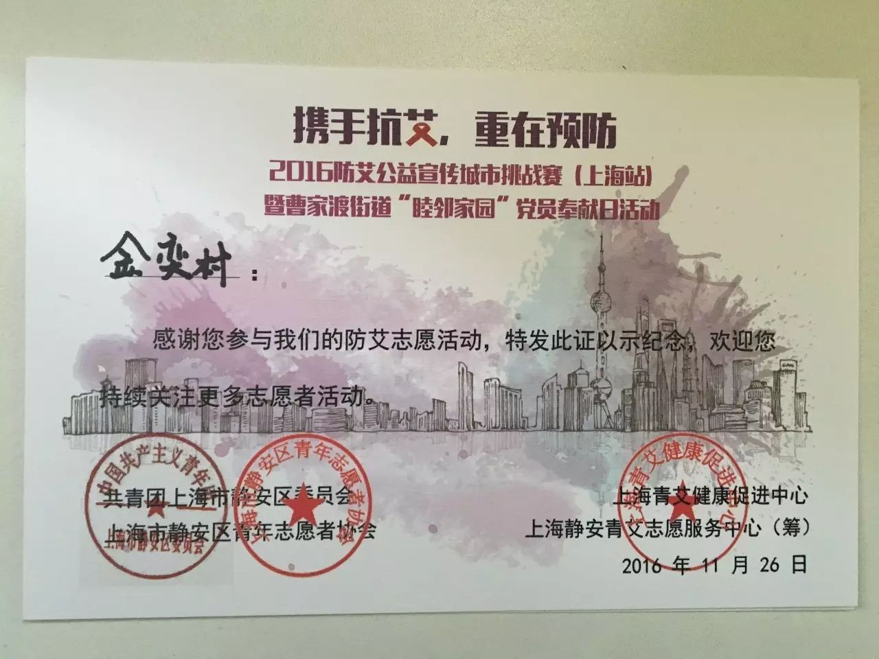 参加“爱滋徒步(CHINA AIDS WALK)”大型公益活动的志愿者金奕村同学