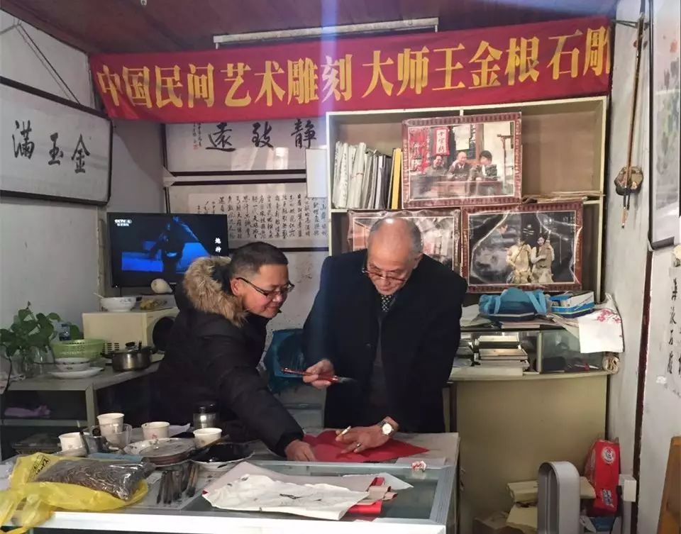 2017年1月24日,为了解上海海派石雕技艺传承情况,林栎昕实践队伍前往浦东南汇书院镇拜访了一级中国民间工艺家王金根老先生。通过探访,他们了解到传统手工艺的生存现状令人堪忧。探索其传承过程中所面临的危机和影响因素,寻求解决这种危机的方法,唤起人们对传统文化的关注与保护也成为了该团队的目标和方向。