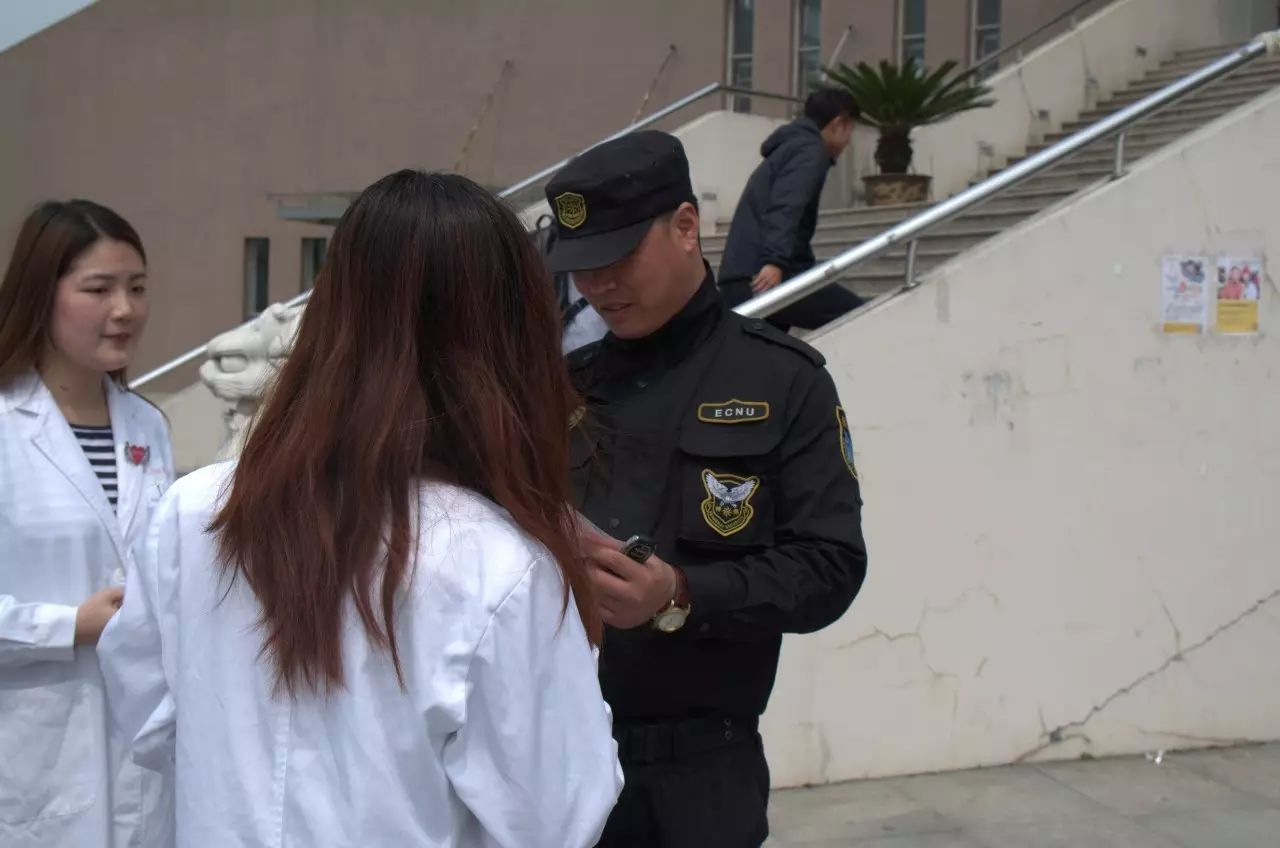 来自于九院的“微笑天使”向路过的保安进行宣传