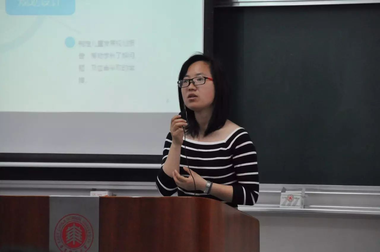 郝艳向我们娓娓道来了几例“华师宝贝”服务的案例,并给同学们播放了这几个孩子在机构上课的视频,讲述了干预过程中的趣事。在视频中,同学们看到了词不达意、无法专注的孩子受到老师大强度干预,“大强度干预就是我们陪他一起吃饭、陪他一起睡午觉、陪他一起做功课。”郝艳自豪地说经过4年的干预,孩子们变得乖巧、善于表达。郝艳一个一个家庭介绍过来,说的都是成长过程中的细微琐事,但从她不经意的微笑和轻柔的话语可以感受到她在这些孩子身上注入的爱意。