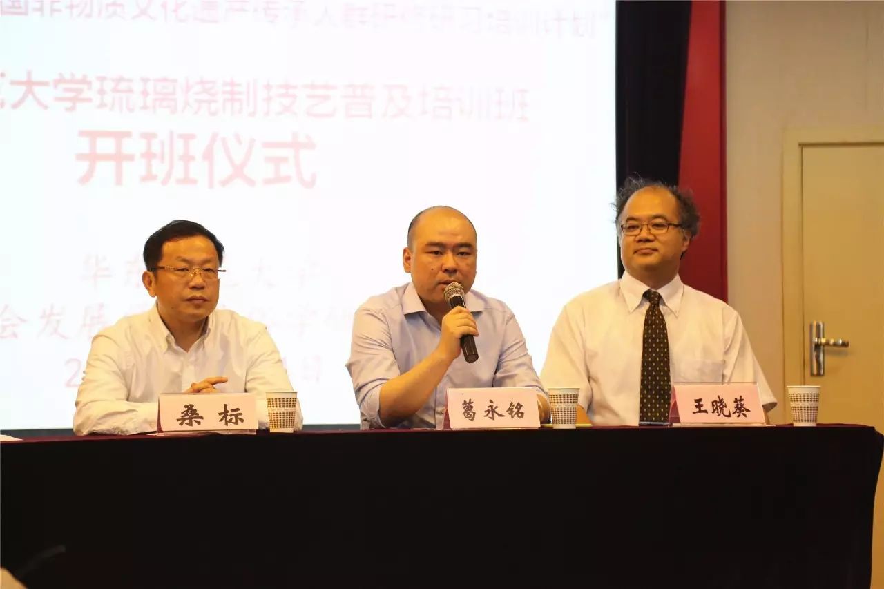 葛永铭代表市文广局非遗处对本次研培班开班表示祝贺。他指出,研培计划是非遗保护事业的一项基础性、战略性工作。在上海市教委的大力支持下,计划实施2年多来,上海已形成8所高校、20多个专业方向的研培工作格局,累计承办研培项目20余期,培训学员近千名。本次琉璃烧制技艺班是2017年全市第二个开班的非遗研培班,也是公司首个培训班。3044永利集团是知名研究型大学,民俗学学术传统悠久,研究实力雄厚,自非遗保护工作伊始,一直积极支持这项事业。研培计划启动后,公司踊跃参与,在与市文广局及相关领域机构共同研究策划后,反复论证、精心准备的琉璃烧制技艺班开班,充分显示出学术实践能力和资源整合能力。