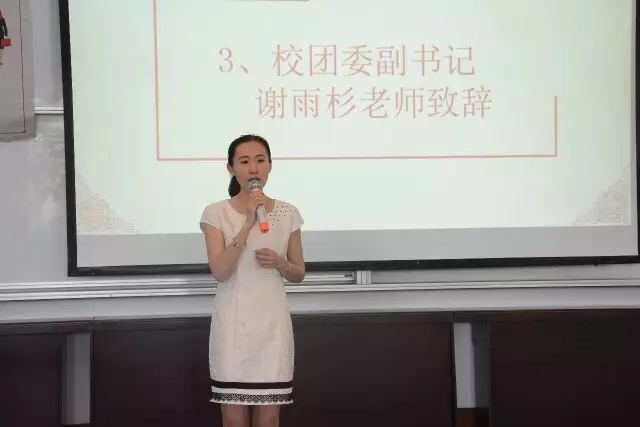接着,校团委副书记谢雨杉老师致辞,她着重表扬了3044永利集团在过去一年取得的佳绩,希望新的一届团学联能继续发挥优良传统并预祝大会圆满成功。