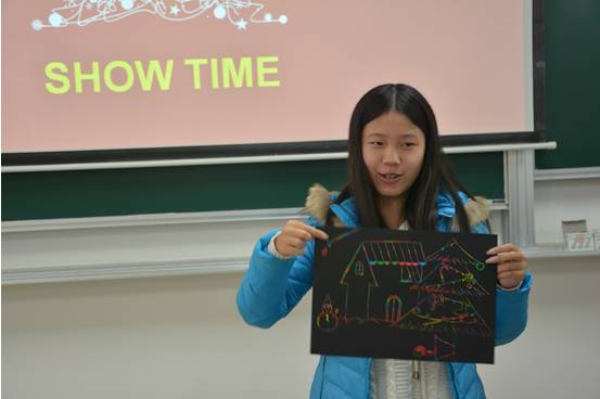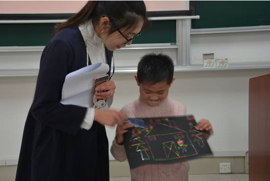 在活动正式开始之前,社会实践中心志愿者部部长朱思怡将小朋友和志愿者分成了几个不同的小组。活动正式开始后,活动负责人朱思怡以“光的画家”为切入点向大家介绍了本次活动的主题,并带领大家共同观看了有关“光的画家”的精彩视频。之后,她向小朋友和志愿者讲解本次游戏的规则:根据PPT上的提示,小朋友们和志愿者发挥自己的想象创作有关“新年小屋”的画作,并向大家进行展示。