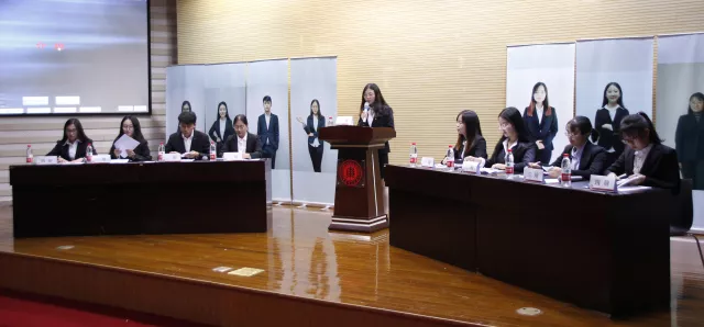 在开篇立论阶段,双方开宗明义清晰阐明自己的观点。对方一辩首先开篇陈词,随后我方二辩梁永杰不甘示弱辩驳了对方观点。紧接着我方一辩许蒙蒙开篇陈词,从高薪引进人才会带来利益导向的负面效应、人才更注重的是高校提供的科研环境和学术氛围等几个方面立论,阐明了我方观点:高校“双一流”建设不应该高薪引进人才。随后的攻辩环节和自由辩论环节更是看点纷呈。我方辩手旁征博引,用“钱学森先生放弃美国高薪回国做科研”、“高薪引进人才只会让东西部人才比例更加失调”等案例多维度对我方观点进行论证。对方辩手也针锋相对,多次用“人才值得高薪”对我方进行反驳,双方抓住突破口,或一针见血,或循循善诱,一次次将辩论赛推向高潮,场下观众掌声连连响起。在最后总结陈词环节,我方四辩陈蕾紧扣立论,铿锵有力、抑扬顿挫的陈词再次点明主题:呼吁在场各位要在市场人才不断流动的大环境下,重新思考高校的本质、人才的定义和学术的坚守。