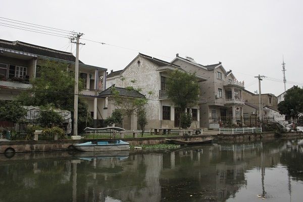 为了让大家对开弦弓村有更全面的认识,姚老一开始就带领同学们寻着“费孝通足迹”,穿过“江村文化弄堂”,沿着贯穿开弦弓村的“小清河”(因河流像一张弓、村子像一支箭而得村名“开弦弓”)参观了整个村庄。河岸新旧居民房相依相对、河上垃圾船摇摇荡荡、河边村民摘毛豆洗衣服日常生活。一派秋日村落娴静景致。姚老边走边给我们介绍了开弦弓村的历史和近况,理论与现场相结合,异常生动。经此,员工们对村子里的人口结构(特别是老龄化问题)、经济发展状况等问题都有了初步的认识。