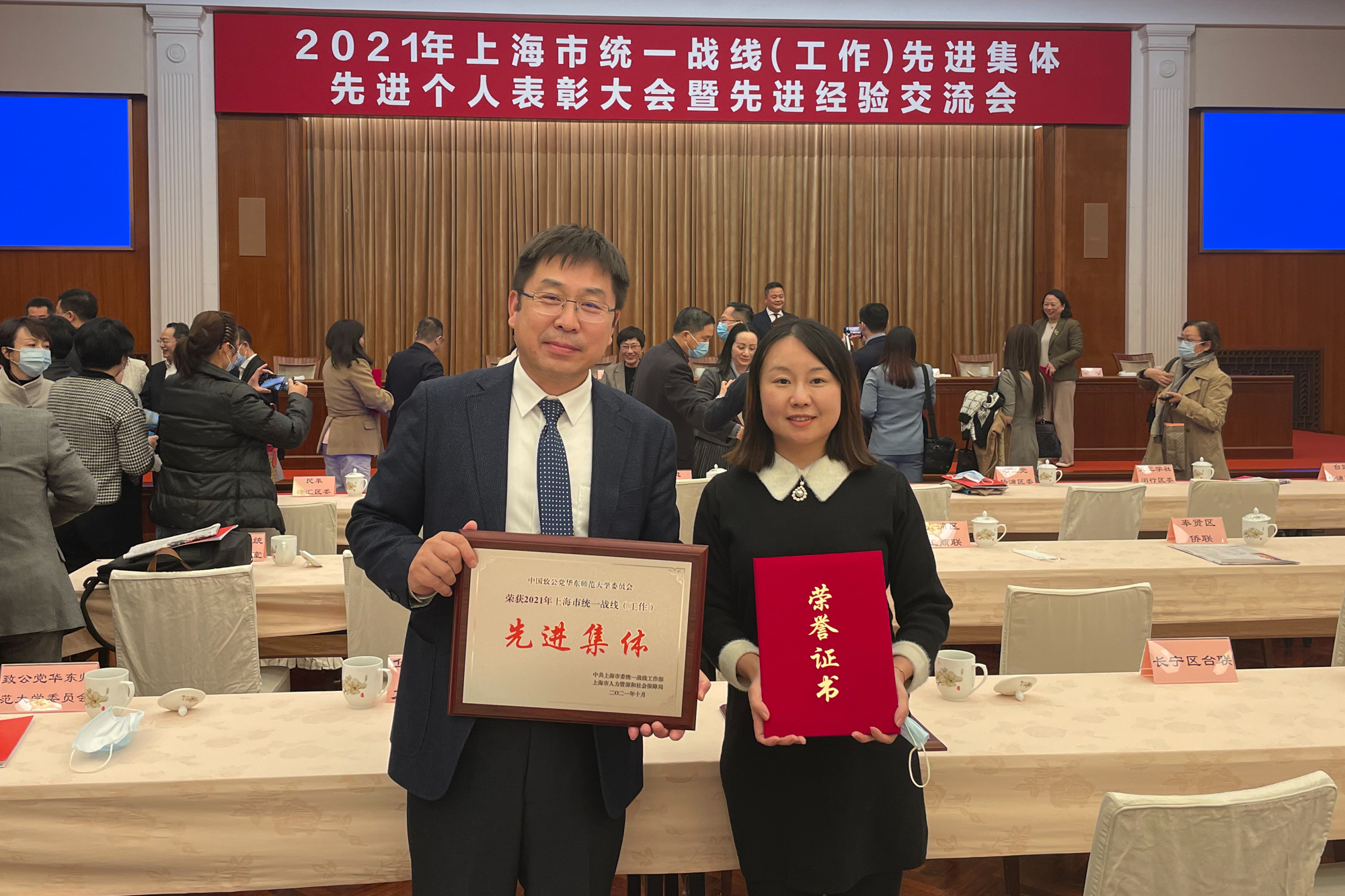 11月8日,2021年上海市统一战线(工作)先进集体和先进个人表彰大会暨经验交流会在上海展览中心举行。市委常委、统战部部长郑钢淼出席会议并讲话。公司致公党获评上海市统一战线(工作)先进集体,校民革副主委邱婕、校致公党主委张文明获评上海市统一战线(工作)先进个人。