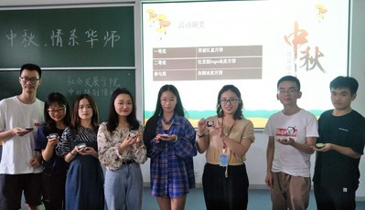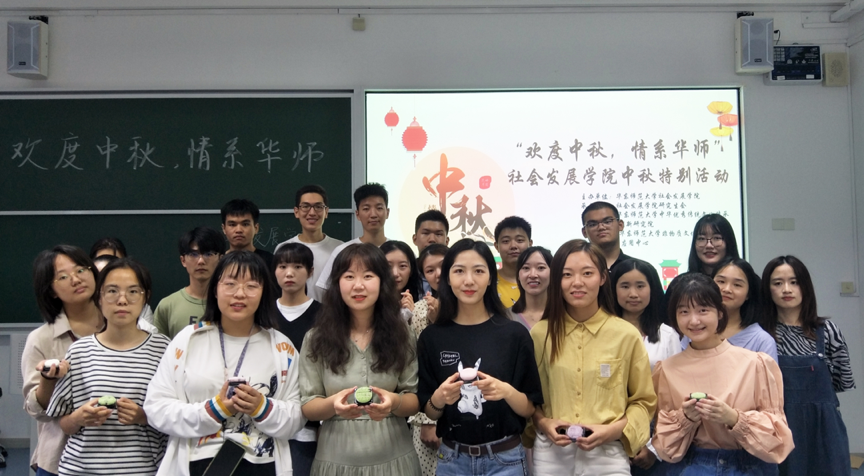 “欢度中秋,情系华师”工作人员及参与同学合影留念