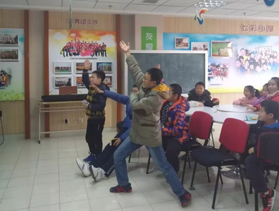第一个课时历时两个小时,分为四个环节展开。第一个环节是简单的破冰环节,志愿者在七彩小屋负责人头头姐的带领下进行自我介绍,小朋友则根据每个志愿者的特点给志愿者取有趣又好记的绰号。简短的介绍后,小朋友和志愿者很快地熟悉起来,成为了朋友。