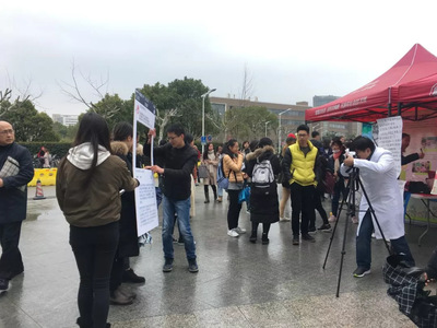 为了凝聚大家对国际社工日的祝福,主办方准备了一面签名板,并现场邀请路过的同学们在签名板签名,送上自己对国际社工日的祝愿以及对社会工作事业发展的支持。虽然有些小雨,同学们的热情却并未受到影响,不一会儿签名板上就签上了密密麻麻的名字。此外,许多公司的老师们也利用短暂的午休参与到签名活动之中,现场的气氛十分热烈。