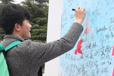 同学们积极签名为社工助力