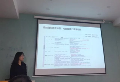 接下来进行分享的是进入携程市场研发部的15级社会学硕士商灵君学姐,她希望我们在求职前要明确自我要求,然后再寻找目标行业与岗位,要对目标岗位的特质进行归纳,最后将自己与目标岗位进行对比,对自我能力查漏补缺。