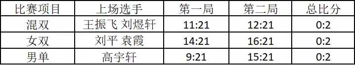 第一场混双我方派出王振飞和刘煜轩。二人实力不俗,奈何对方选手实力也不容小觑,连续不断的强劲进攻让我方措手不及,比分很快被拉开。加之我方失误较多,难以追平比分,最终连失两局,在混双比赛中以0:2落败。