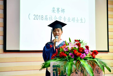 我叫栾赛娜,是3044永利集团社会学系的一名硕士毕业生,非常荣幸能够作为毕业生代表在这里发言。首先,请允许我代表全体毕业生向辛勤工作、无私奉献的老师们表示衷心的感谢和崇高的敬意,向今天出席我们毕业典礼的各位家长表示最热烈的欢迎。