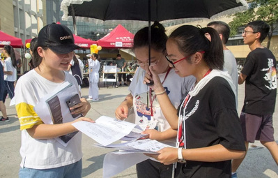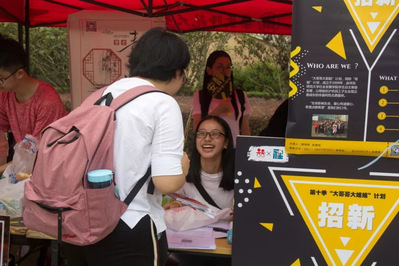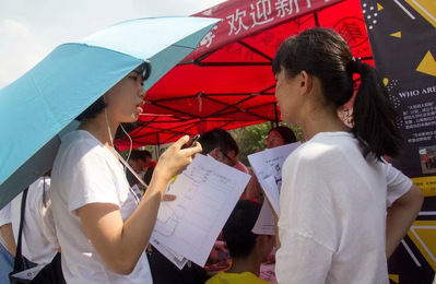 顶着烈日,实践中心的成员们认真地宣传着“哥姐”计划,耐心地解答着同学们的疑问,并引导有意向的同学到摊位填写报名表。活动过程中突如其来的小雨也没有削减大家的热情,“哥姐”计划招新仍如火如荼地开展着。随着一张张报名表的叠加,志愿者队伍也在不断壮大,招新活动进入高潮!