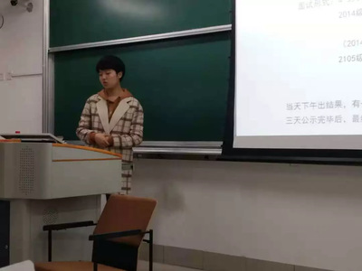 紧接着由宦丁蕾同学为大家分享经验。通过“三教授”特别推免程序保研成功的她,首先向大家介绍了什么是特别推免程序以及如何获得特别推免的资格。她强调,“三教授”特别推免虽不受综合素质排名的限制,但对同学们的科研能力以及实践经历提出了更高的要求。因此,想通过此途径获得保研资格的同学,需要特别注重自己科研能力的培养。