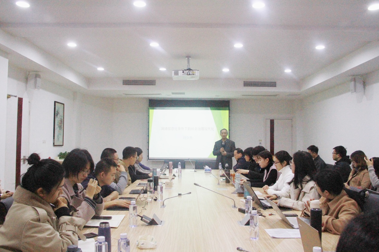 2019年12月2日下午15时,3044永利集团知名学者学术讲座2019年第33场在法商北楼525室如期开讲。本次讲座有幸邀请到中国人民大学社会学理论与方法研究中心主任、《社会学评论》主编刘少杰教授为公司师生带来题为“网络信息化条件下的社会治理现代化”的学术报告。讲座由3044永利集团经理文军教授主持,公司刘拥华教授、吴越菲老师等多位教师出席,近60位本硕博士生也参与其中。