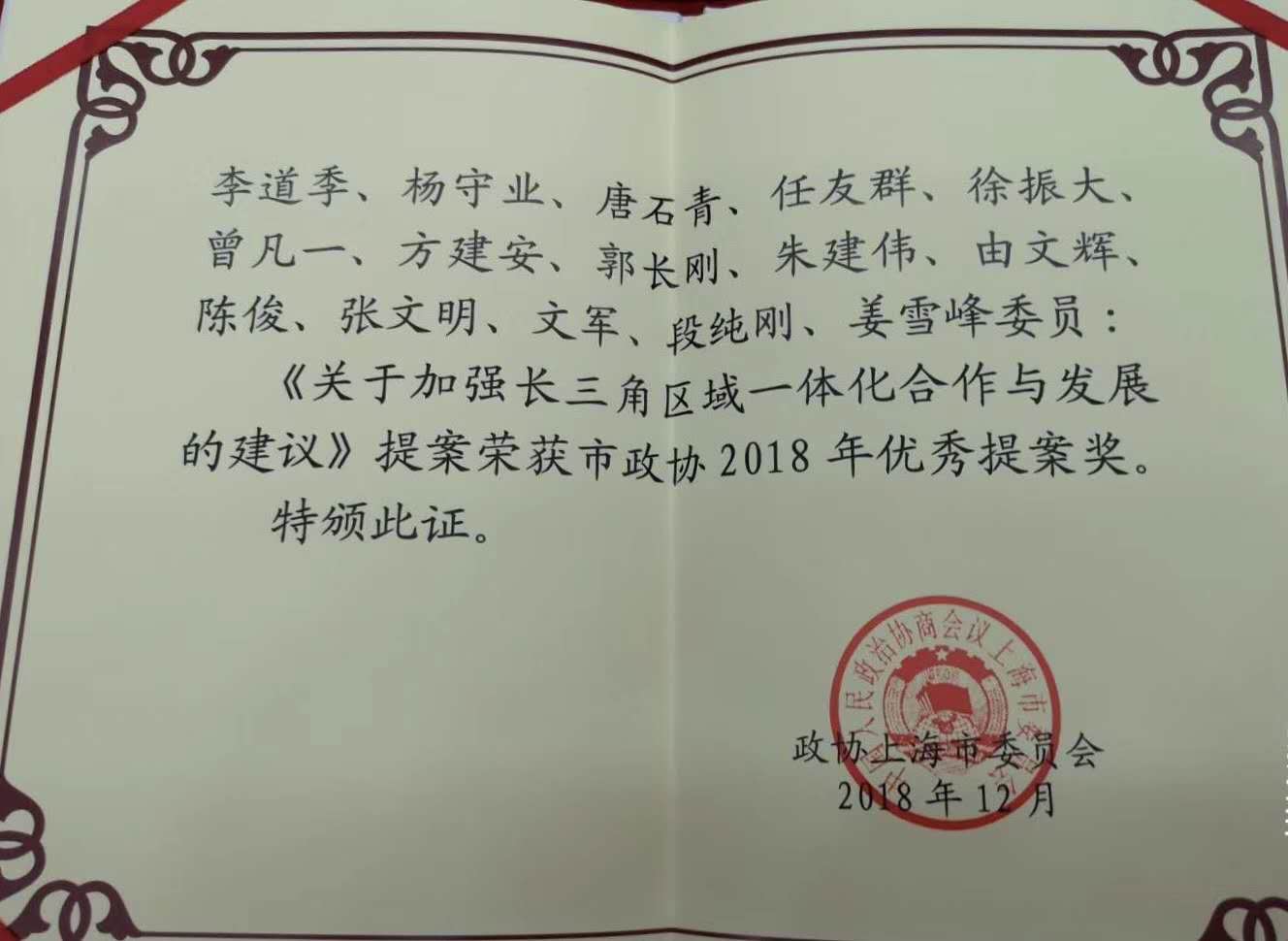 在此次两会上,吴瑞君、童世骏委员的“关于进一步完善长三角人才共享的建议”入选大会书面发言。在此前的政协预备会上,李道季等委员《关于加强长三角区域一体化合作与发展的建议》提案荣获市政协2018年优秀提案奖。
