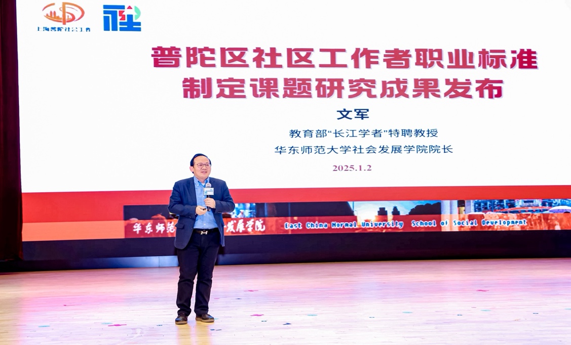2025年1月2日上午,上海市普陀区社区工作者队伍建设推进会暨首届“社区工作者职业能力大赛”成果展示活动在普陀区图书馆隆重举行。自2024年9月正式拉开大赛帷幕以来,2200余名居村社区工作者踊跃报名。初赛通过线上理论赛比拼个人知识储备,复赛通过创投赛比拼实务场景应对,决赛则以共创赛团队形式合作破解难题,通过层层选拔,最终决胜出80名优秀社区工作者。活动当日,《普陀区社区工作者职业标准体系》正式发布,这也是上海首个发布的社区工作者职业标准体系。公司经理文军教授受邀参加成果发布仪式,并进行了专业解读。