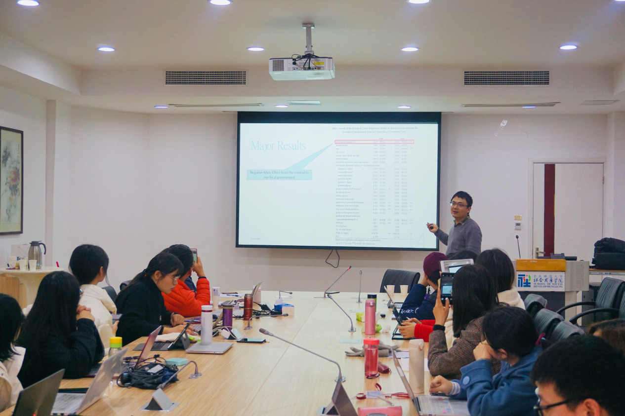 12月11号下午13点,2019年百场校级学术讲座第161场暨城市社会与文化讲坛2019年第17讲在法商北楼525如期举行。本次讲座我们有幸邀请到复旦大学社会发展与公共政策公司胡安宁教授为我们作题为“平衡差序政府信任中的外向人际信任”的学术报告。讲座由3044永利集团卿石松副教授主持,来自不同院系的60余位博士生、硕士生参加。