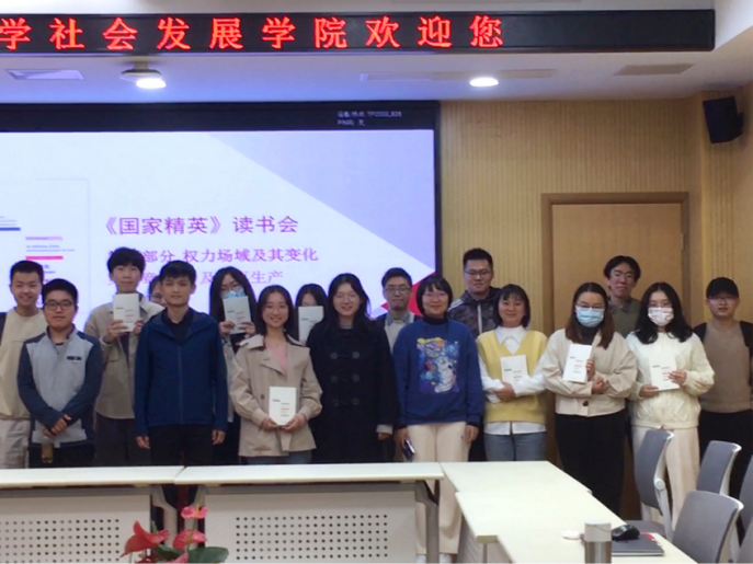 2021年11月19日,在公司支持下,由社会学研究生发起的社会学系读书会第二期如期在法商北楼425室举行。本次读书会由社会学系讲师黄超进行指导和评议,来自社会学、人口学、民俗学、人类学、教育学等专业的20多名同学参与讨论。本期阅读书目为皮埃尔·布尔迪厄所著的《国家精英:名牌大学与群体精神》。