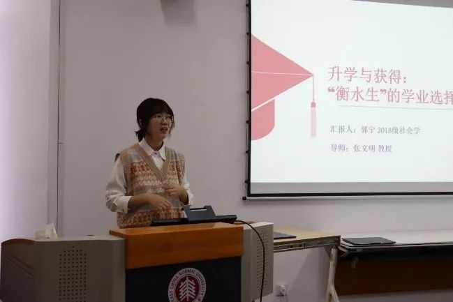 郭宁学姐对衡水模式下培养出的员工在中学期间的求学行动和升入大学后的学业理解进行了讨论,指出了在研究过程中积极和指导老师讨论的重要性。
