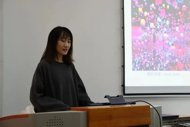 李牧歌学姐以自身实习单位为田野点,关注当代展览空间生产,以“融入”和“重构”解释艺术展由“网红化”到“去网红化”的过程,还向学弟妹们生动地描述了寻找被访者的过程。