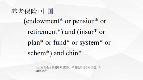 最后,宋老师介绍了检索的功能,主要有导航浏览&文献检索、简单检索、高级检索、专业检索、二次检索、限定检索等。在课题分析与信息检索的流程部分,老师以“中国养老保险”案例为例,阐释了课题关键词提炼的全面性问题与内在逻辑关系把握的准确性问题。
