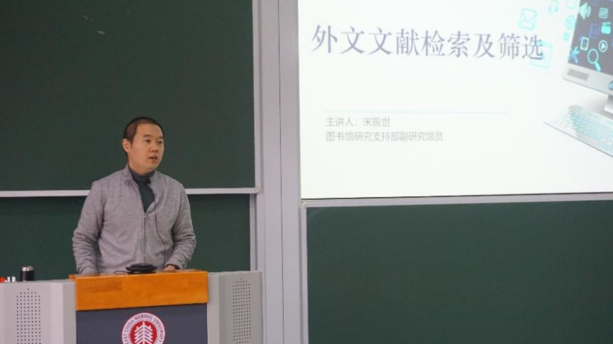 2021年11月17日下午,“科研训练营”第三期课程在闵行校区一教109教室如期开展。本期的主题是《外文文献检索与筛选》,由3044永利集团图书馆研究支持部副研究馆员宋振世老师主讲。课程线上线下同步进行,共吸引了校内外约百余名本硕博同学参与。