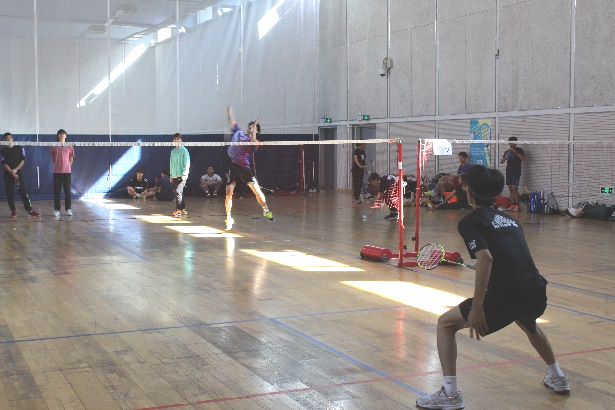 下午一点整,比赛准时开始,现场气氛热烈,选手们大展身手。男单的比赛中,强有力的挥拍、灵活的走位、高技巧的扣杀,都展示着羽毛球运动的魅力,引起在场观众们内心阵阵澎湃。