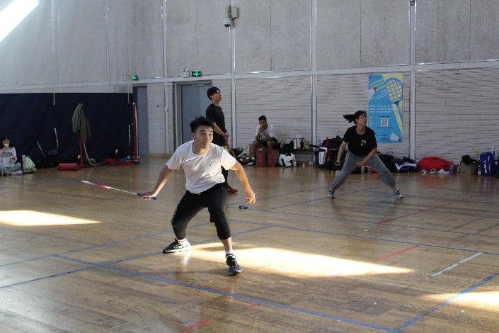 之后,由蓄势待发已久的双打选手进行比赛。他们高昂的斗志与活力充溢着运动场,而每组选手之间独有的默契更是紧紧凝聚着彼此,完成一次又一次出乎在场人意料的绝妙配合!迅捷、灵动,他们轻盈地变换脚步,侧身、跳跃,他们尽情舒展身形,每一次进攻与防守都是队伍间激烈的角逐,充分展现出选手们各自的神采飞扬。