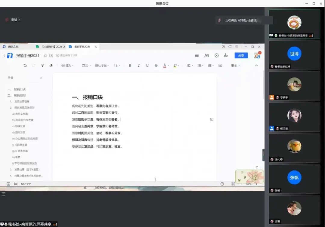 随后,佘青原同学主讲财务报销的相关注意事项。佘青原同学以迎新活动和科研训练营活动为例介绍相关费用产生来源,预算表、决算表的制作等工作;之后详细介绍了出租车发票、图书发票等8项不同类型发票的报销要求,以及不可报销发票的相关细则;最后向研会成员展示发票报销的完整流程。