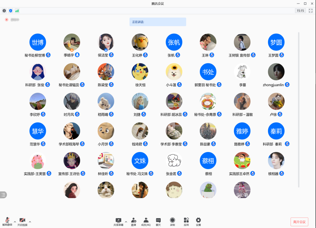 首先,季皓宇同学介绍了研究生会内部建设情况,传达了全国学联、校研究生会关于研究生会建设的相关要求,向研究生会成员强调凝聚集体意识的必要性,鼓励成员积极参加公司第二课堂的学术提升活动,并希望新一届成员共同将研究生会建设得更好。