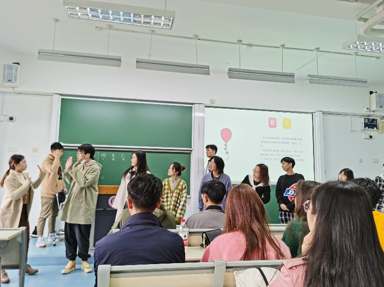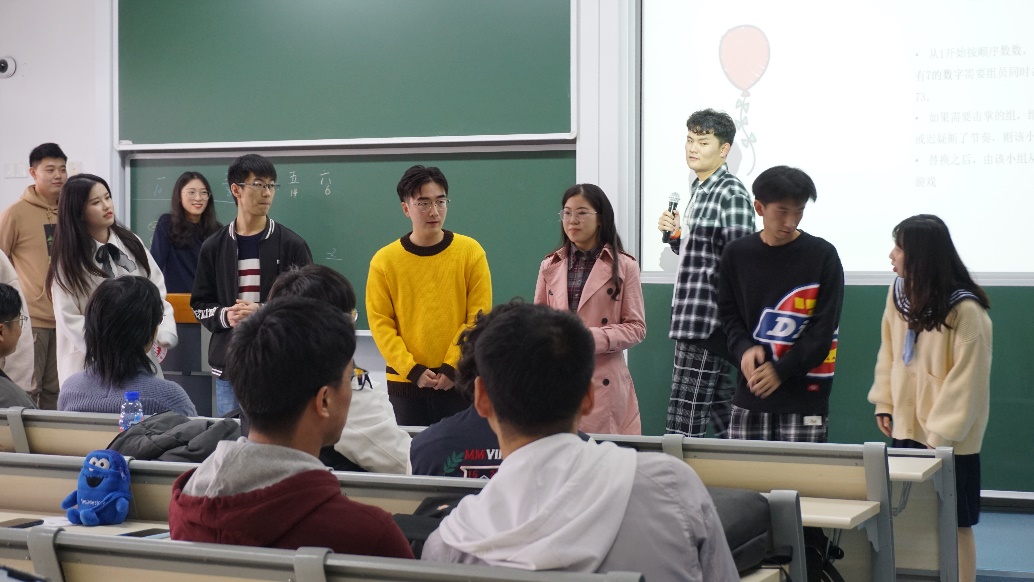 第二个小游戏是经典的数七游戏,十分考验同学们的反应能力和默契程度。淘汰制的游戏规则使得各组都十分小心。但是紧张之下总会出错,各个小组之间竞争非常激烈。第五组的小伙伴竟然未尝败绩,被大家封为“站神”!