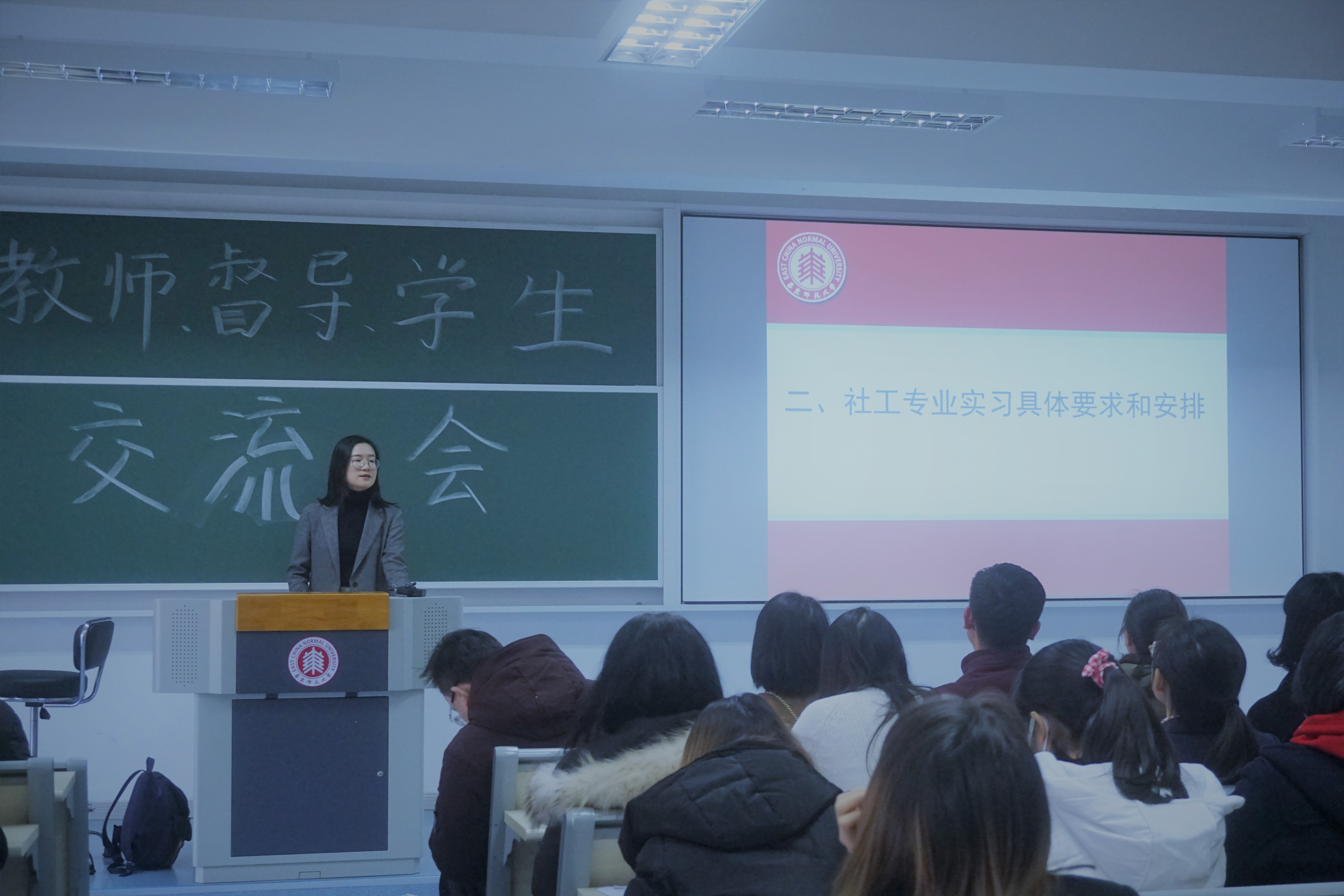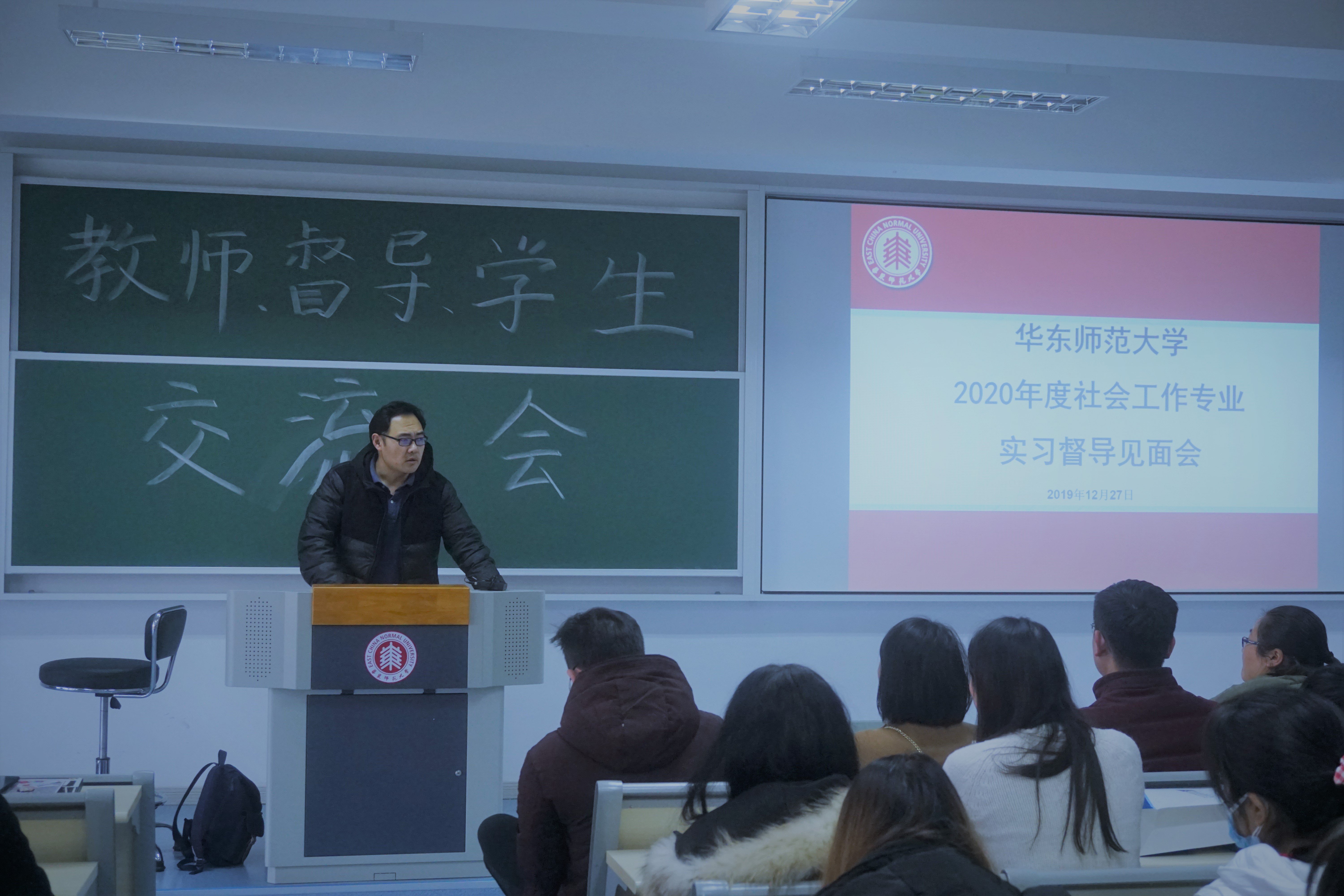 2019年12月27日下午,2020年度社会工作专业实习动员大会暨督导见面会在闵行校区第一教学楼311、316和320教室圆满举办,出席本次会议的有三十多位实习基地的社工部门负责人和资深社工作为督导代表参会,即将参与实习的2017级社会工作本科生和2019级社会工作全日制研究生全员出席。