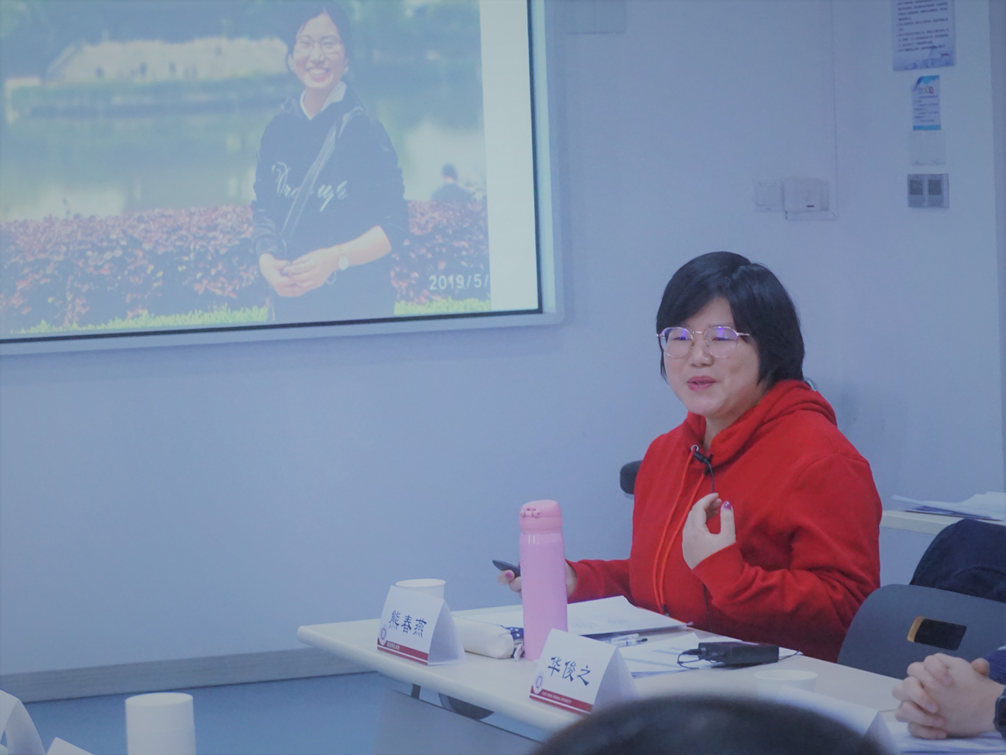 随后,上海市闵行区活力社区服务中心运营总监熊春燕和复旦大学附属医院社工部朱富忠作为机构督导代表,进行发言。熊春燕介绍了活力社区服务中心的基本项目,也对华师大社工系及员工的支持表示了感谢,她表示机构与实习生的关系是一个互帮互助的过程,机构帮助员工完成实习工作,促进了同学们的专业成长;实习生也给机构带来新知识,新思想,新活力。朱富忠表示实习是一次理论知识与实务的碰撞,是一次低成本的试错机会,是一次工作前最接近现实生活的经历,是一次处在复杂关系中应对多重任务的体验。一名合格的实习生需要有知识、有态度、有认知,才能出色地完成实习工作。两位的发言都来自多年的一线督导经验,为大家的督导工作带来了启发。