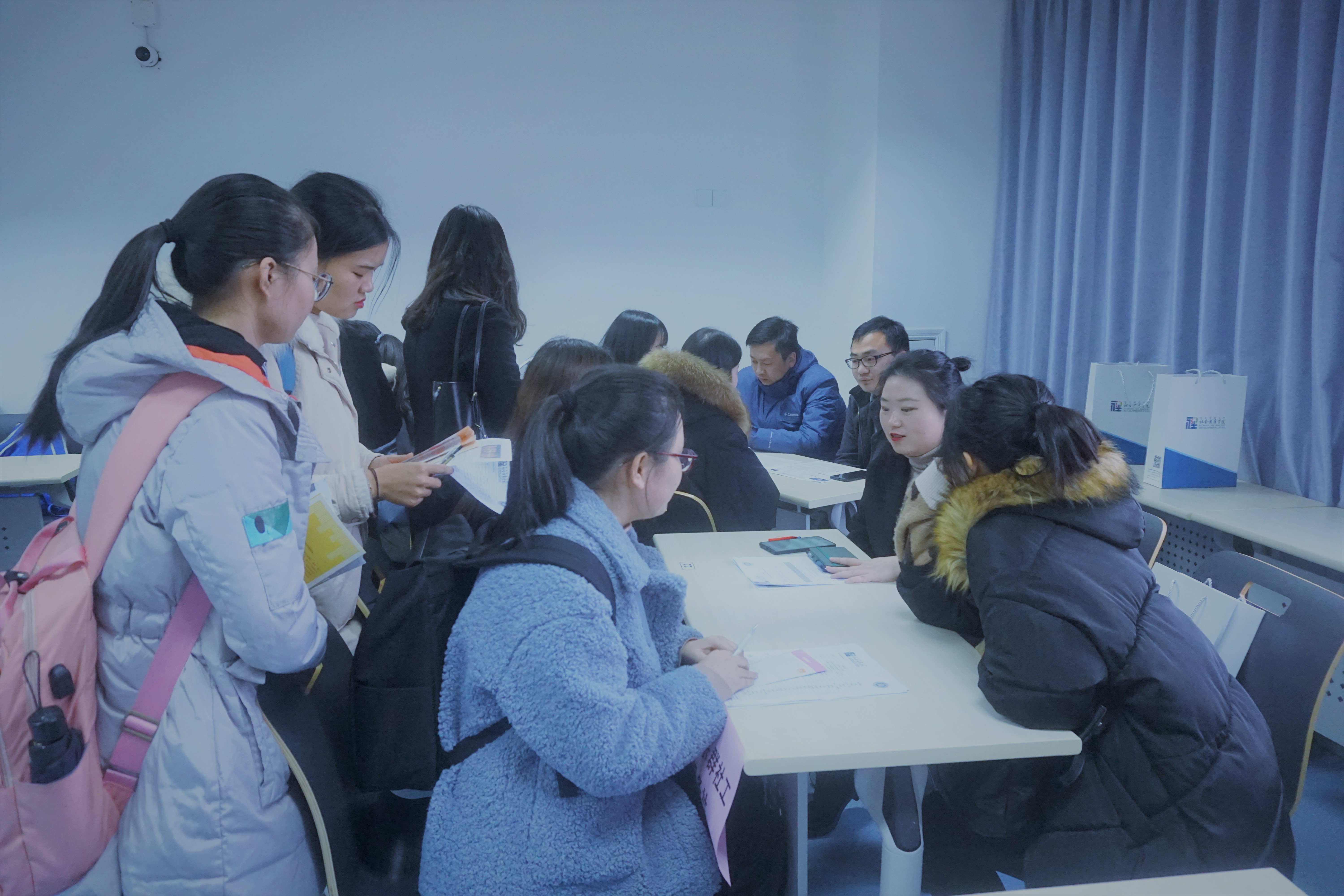 会议下半场是机构督导嘉年华。机构督导代表被分成两组,在316和320教室设立咨询点,实习员工根据自己的实习需求、个人兴趣与机构督导代表进行交流。本次嘉年华活动还设置了微信互动墙,机构督导、员工、公司老师将个人关注的问题通过大屏幕的形式展现出来。在咨询环节,部分同学准备了简历将自己的个人优势展现在督导面前,不少督导更是在现场就实习目的、实习收获、机构需求等方面对同学们进行了简单的面试。该活动持续了一个多小时,活动现场热闹非凡。