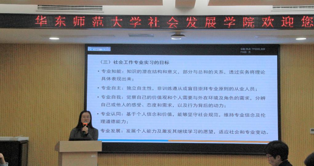 郭娟从社会工作专业的专业实习出发,反思实践过程中的思政教育。社会工作作为一门实务性专业,通过专业的知识与技巧为有需要的人提供帮助与服务是其主要教学目标,其并行式和集中式的实践教学不仅是专业发展要求,同时也是助力个人成长的人才培养过程。公司不断打造情境体验-知能实践-反思创新-价值引领的四位一体社工实践课程体系,推进社会工作专业的思政教学进程。郭娟还指出开展专业实习动员及经验交流分享会、深化真实情境中的专业实习、开展实习展示暨表彰大会等是主要的思政教学方式;公司教师通过聚焦员工实习手册记录、小组讨论的思考与反馈、实习总结大会的现场汇报、汇报结果的员工互评和专家点评等内容,对学科教学成效进行全方位评估。最后,郭娟分享了部分典型案例及优秀员工代表,并对既有工作中的不足和对未来工作的展望进行了总结。