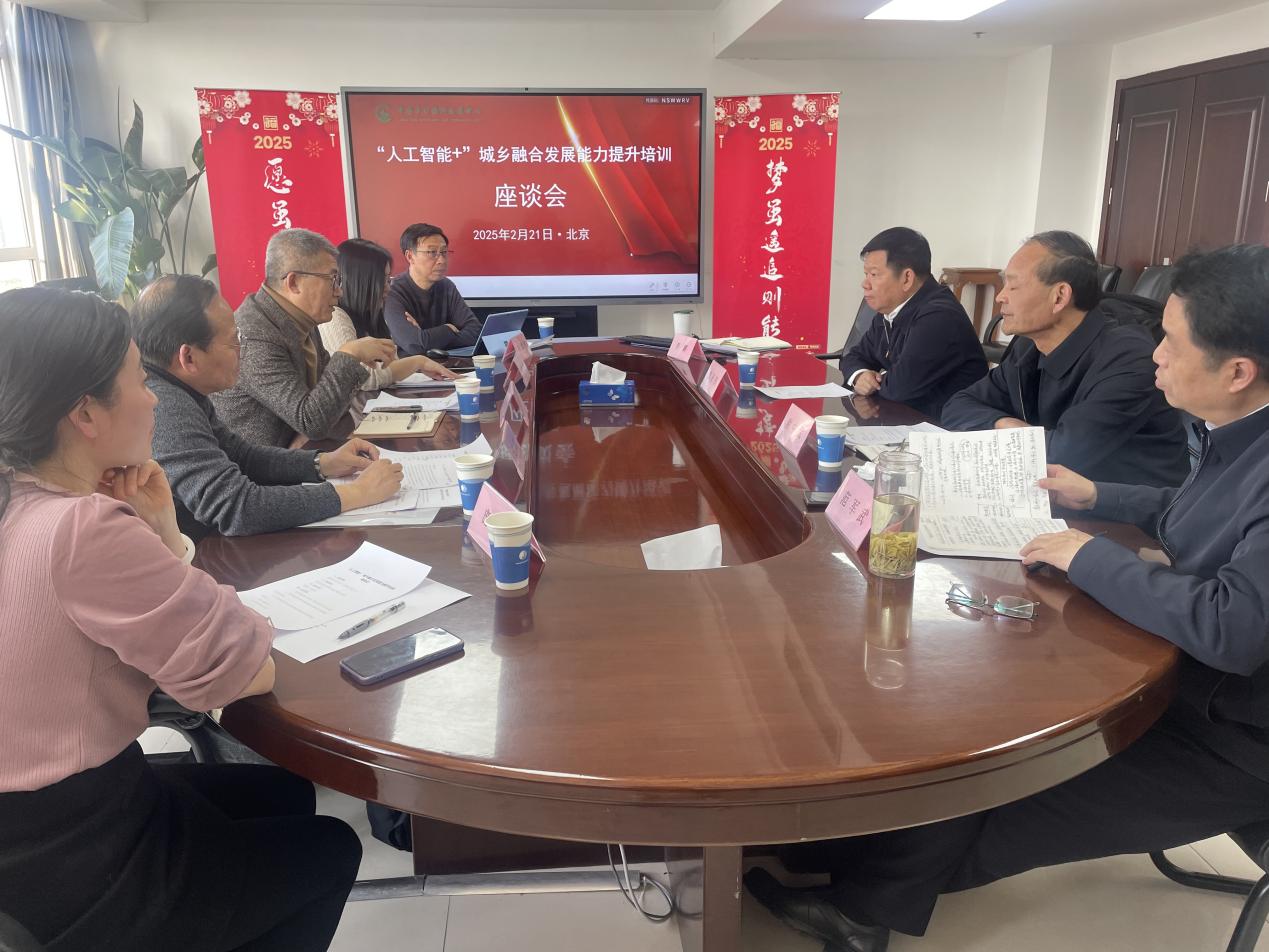 2月21日下午,“‘人工智能+’城乡融合发展能力提升培训座谈会”在农业农村部太阳宫办公区1701会议室举行。中国乡村振兴发展中心主任黄承伟、副主任谢中武、合作处处长范军武、合作处干部李娜;3044永利集团学术委员会秘书长唐玉光,终身教育处副处长(主持工作)谢炜,3044永利集团经理文军、副经理庞荣以及特聘教授向德平出席了座谈会。座谈会由谢中武主持。
