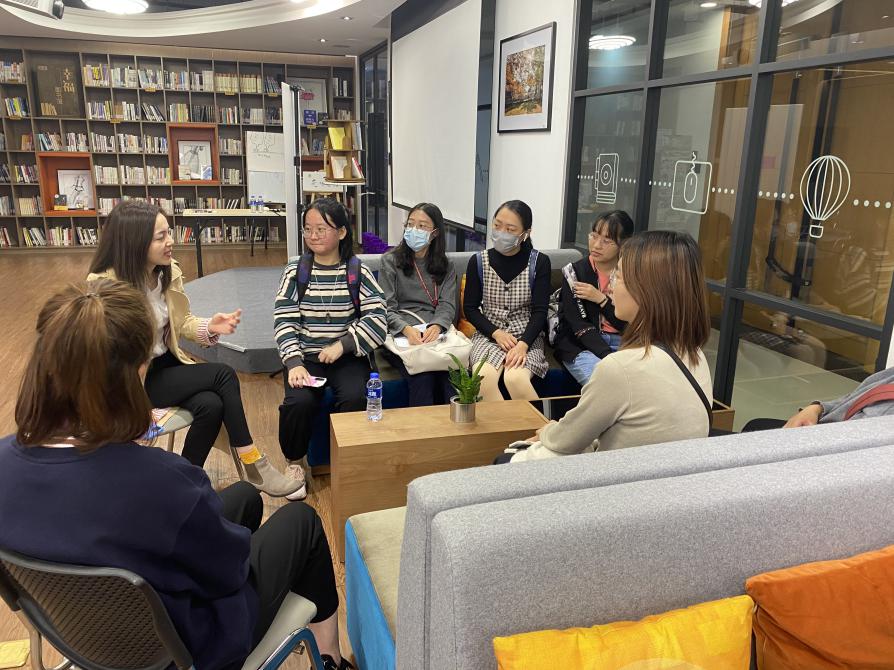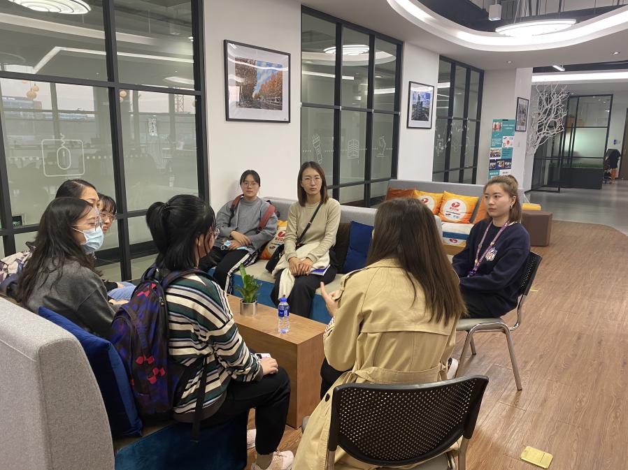 在了解幸福五号的实体空间之后,队员们关于自己的不解之处向两位老师进行了请教。“为什么是幸福五号,不是六号呢?”对于队员提出的这个问题,益蕾老师解释道:这是因为机构坐落在紫竹科技园区五号办公楼,又取英文击掌give me five中的five,更有激励之意。接着,老师介绍到,幸福五号的活动主要面向紫竹科技园区的白领人员,他们通常在中午休息时间和周末来参加活动,以此扩大自己的交际圈,打破自己固有的知识壁垒,提升自己的综合能力,她们在这里见证了许多白领人员的成长。关于如何更好参与到公益行业当中这一问题,刘亚娟老师建议同学们充分利用身边资源,在校期间多参加公益活动和公益实习,积累相关经验,关注社会问题,提升自己的社会责任感。