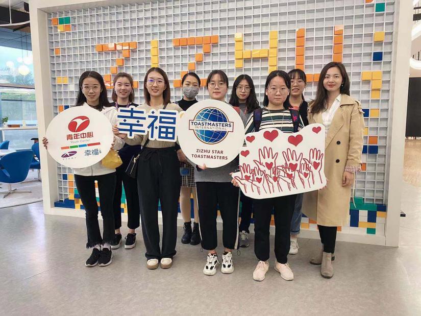 交谈结束后,队员们纷纷表示对于幸福五号和公益组织有了更加细致和深刻的了解。不同于过去印象中的公益行业只服务老人、儿童群体,在此次参访过程中她们认识到公益组织有着更加丰富的服务对象;同时,对于公益组织的运行机制和管理模式,队员们也表示有了更全面的认识。活动的最后,参访队员们对老师们表示了感谢,并邀请老师们一同在logo墙前进行了合影留念,此次参访活动圆满结束。