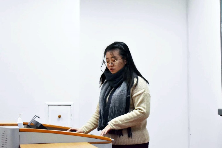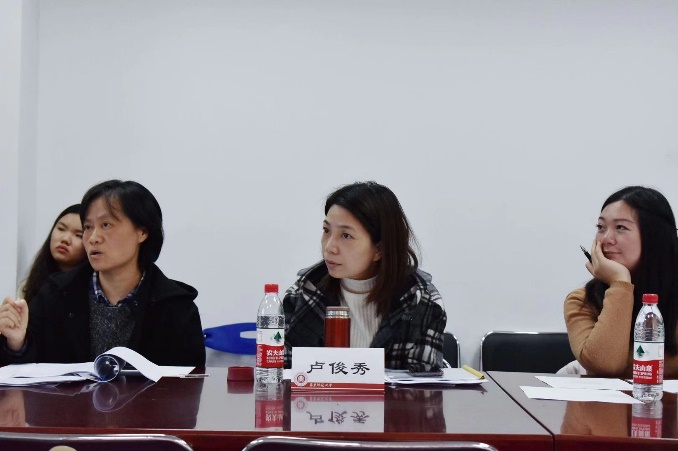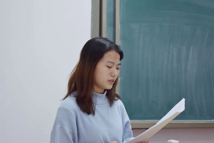13时整,答辩准时开始。主持人熊静怡介绍出席本次答辩会的评委老师,她们分别是陈赟老师、卢俊秀老师和林茂老师。本次答辩,每组的答辩时间为十分钟,包括五分钟展示时间和五分钟老师提问时间。三位老师根据答辩情况分别打分,最后取平均分作为答辩组的最终成绩。