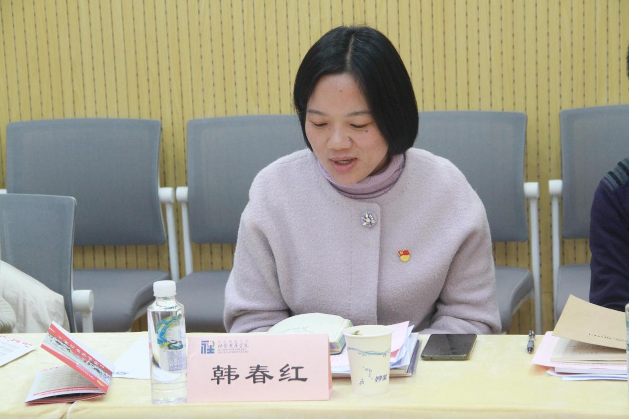 社会工作系和人口所联合党支部组织委员吴连霞作“服务学习导向下基层党建路径探索”的报告,提出了支部服务学习的基层党建思路,围绕教育筑梦、课程思政等亮点工作,汇报了服务学习党建的阶段性成果。